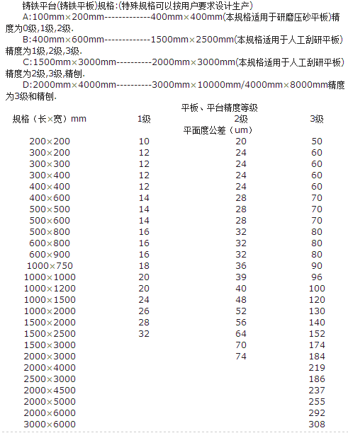 鑄鐵平臺(鑄鐵平板)規格:(特殊規格可以按用戶要求設計生產)